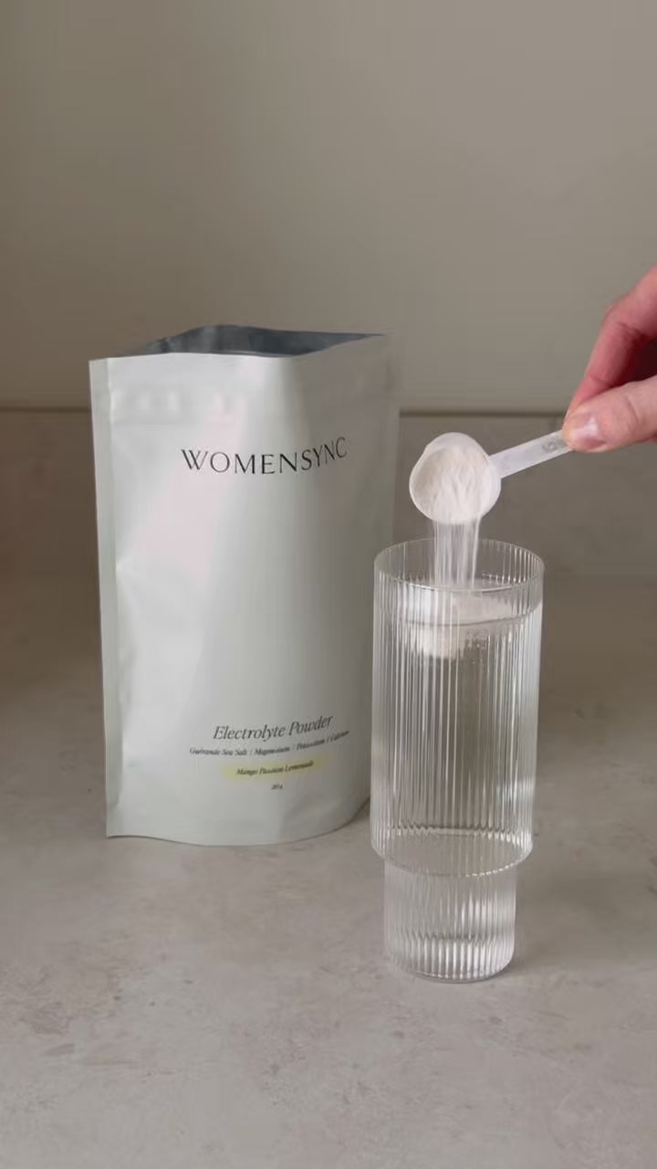 Womensync Electrolyte Powder är ett elektrolytpulver som passar till vardags så väl som genom hela cykeln, vid graviditet, amning och i klimakteriet. Kvinnokroppens vätskebalans påverkas av hormonella variationer under cykeln, under graviditet då blodvolymen ökar, vid amning samt av värme eller svettningar under klimakteriet.