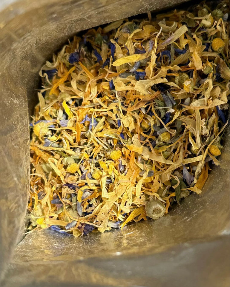 Ett ekologiskt, koffeinfritt örtte med ringblomma, kamomill, pepparmynta, lavendel, fänkål och blåklint. Blandningen är framtagen av vår certifierade örtspecialist Erla Sól och inspirerad av örter som inom örttraditionen använts i olika sammanhang kopplade till mage och tarm, men några särskilda effekter är inte vetenskapligt bevisade.