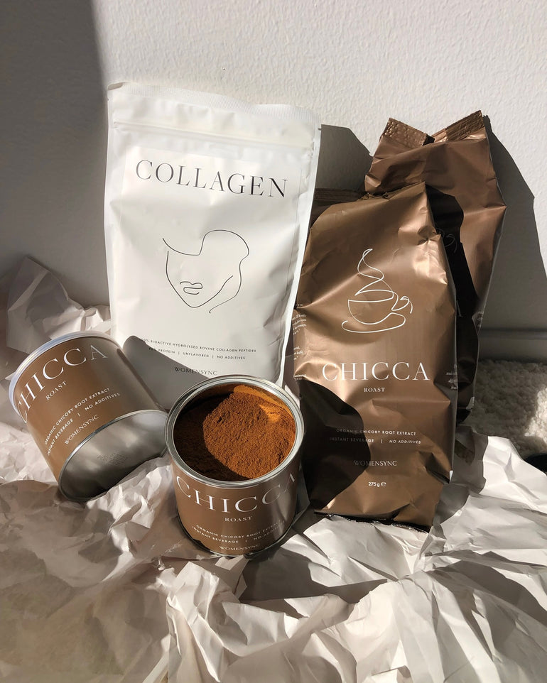 Chicca Roast is a natural caffeine-free alternative to coffee made from 100% roasted chicory root. The drink has roasted, nutty notes reminiscent of coffee in the taste with soft hints of chocolate and sweetness.