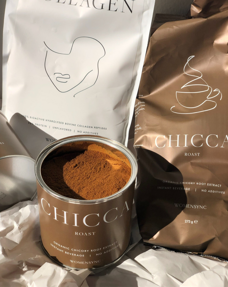 Chicca Roast is a natural caffeine-free alternative to coffee made from 100% roasted chicory root. The drink has roasted, nutty notes reminiscent of coffee in the taste with soft hints of chocolate and sweetness.