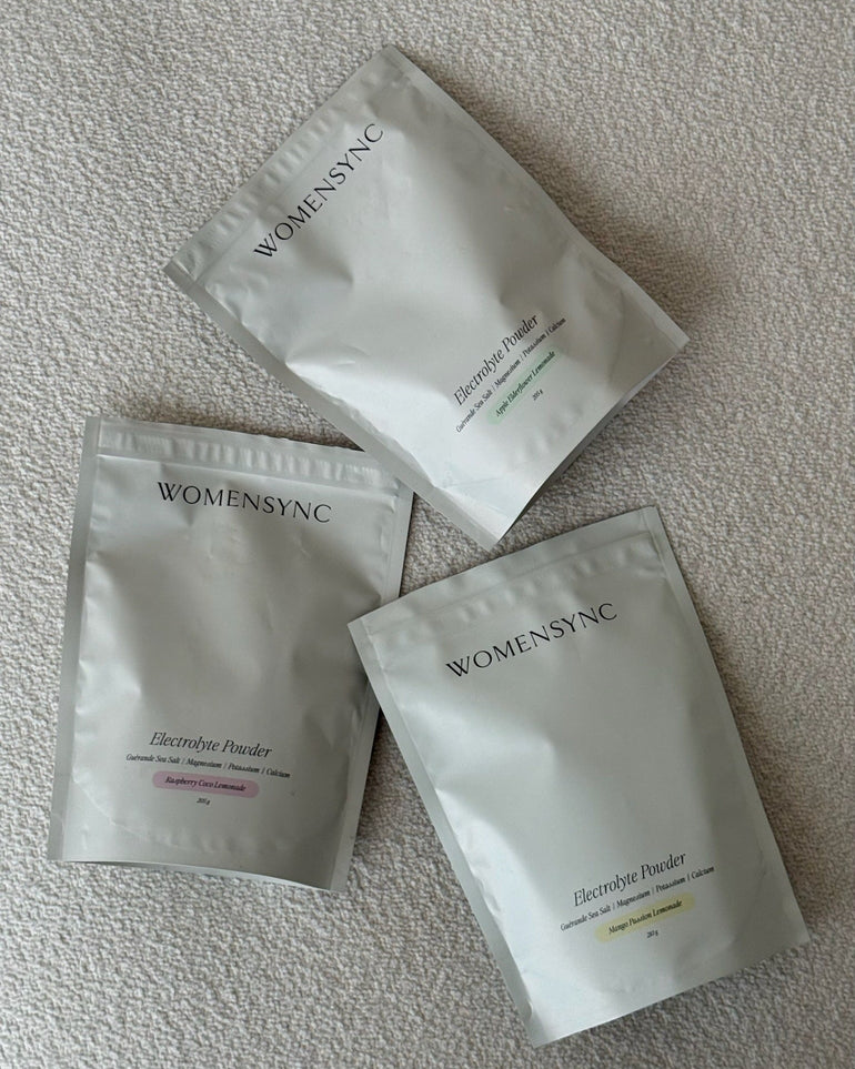 Womensync Electrolyte Powders är elektrolytpulver för att stötta vätskebalansen i vardagen. Till skillnad från många elektrolyter som är framtagna för extrema lopp och prestationer är Womensync Electrolyte Powders kalibrerat för vardagen såväl som under menscykeln, graviditet, amning och klimakteriet.
